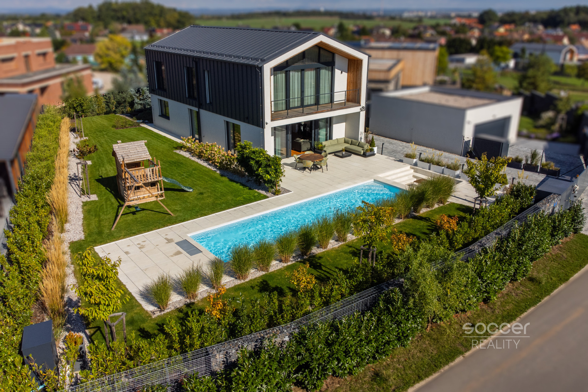 Soccer Reality vám exkluzivně zprostředkuje prodej luxusního rodinného domu, který zaujme i ty nejnáročnější z vás. Dům je součástí velmi úspěšného projektu Březový háj z roku 2022, navrženého architekty společnosti JK ARCHITEKTI s.r.o. (Ing. arch. Jan Kasl a Ing. arch. Pavel Krpec). Na jejich práci navázal ateliér Morix manželů Pizingerových, který interiérům vtiskl současnou podobu, osobitý rukopis a jedinečný design.
