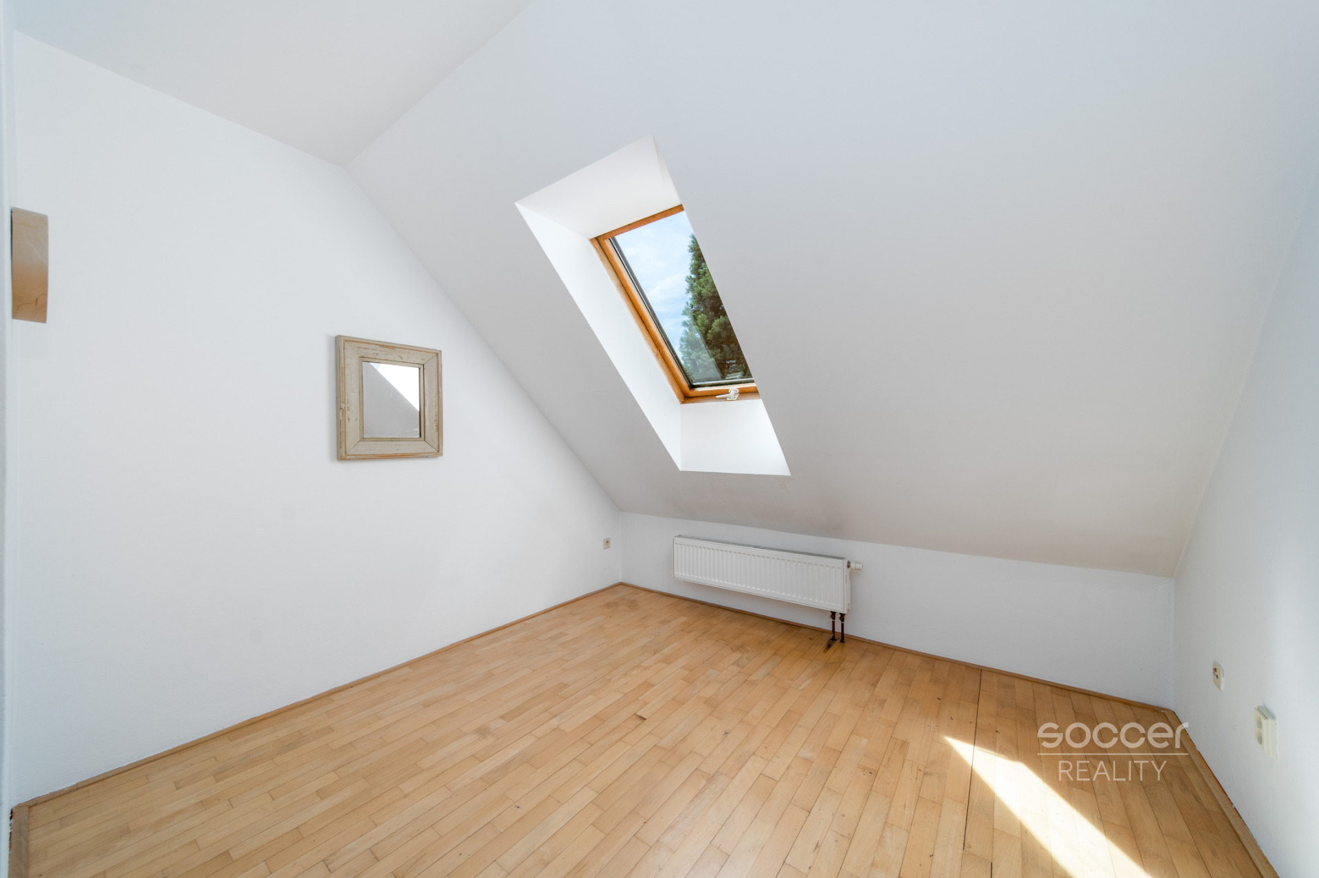 V podkroví se nachází chodba, čtyři pokoje (jeden z nich průchozí) a prostorná koupelna s vanou a WC. Největší ložnice má vlastní lodžii. Nad obytnou částí se nachází půdní prostor, který je částečně upravený k využití – má střešní okna, SDK podhledy a vytápění.