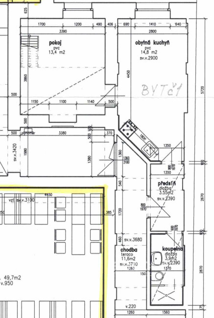 | Popis vybavení | Kuchyňská linka, lednice, myčka nádobí, elektrická trouba, keramická varná deska, vana, WC samostatné, balkon |