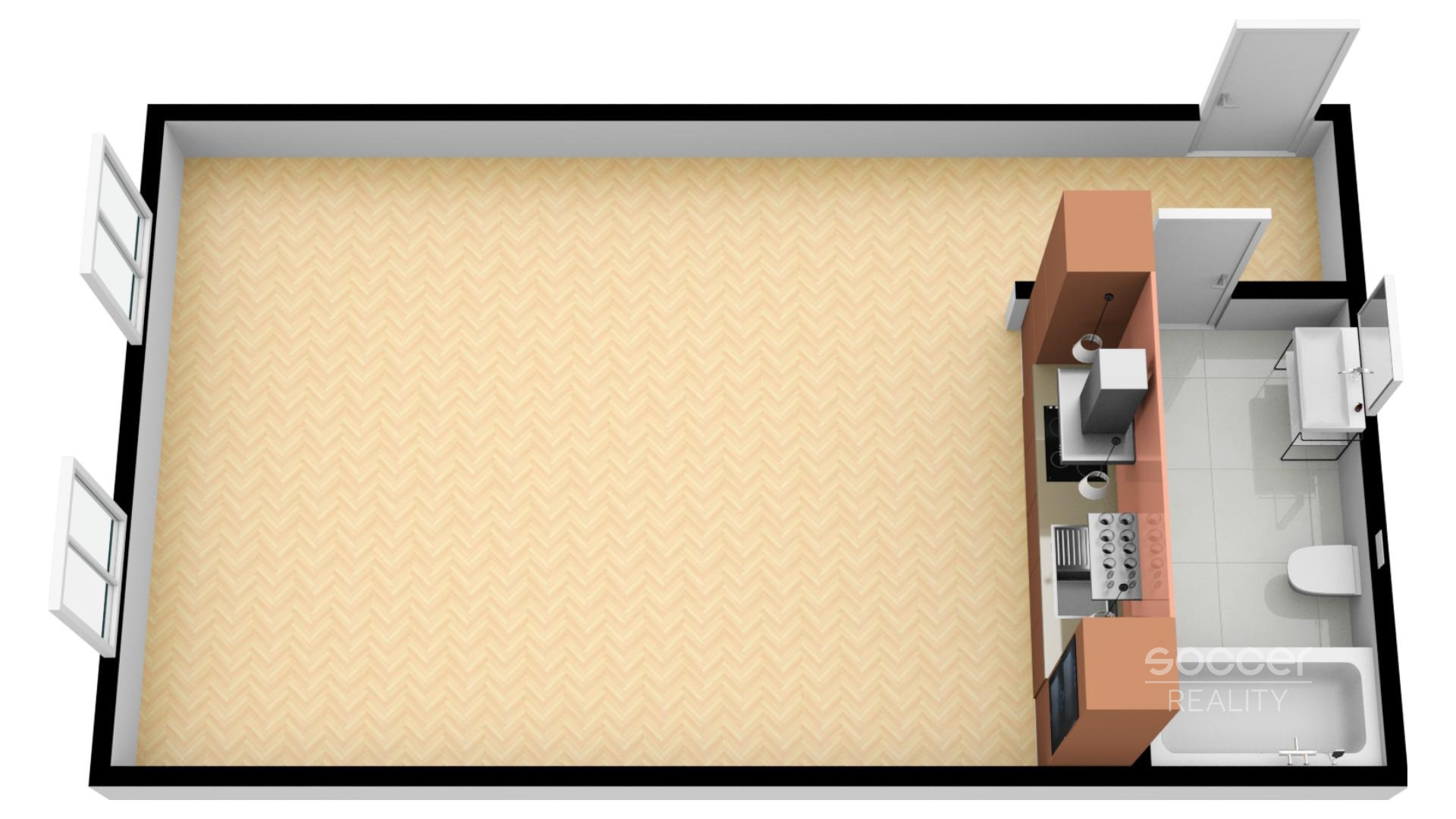 Po vstupu do bytu vejdete do prostorné předsíně, která je ihned spojená s velkým otevřeným prostorem, kde se nachází kompletně vybavená kuchyňská linka se všemi spotřebiči včetně pračky. Koupelna je s vanou a WC dohromady.