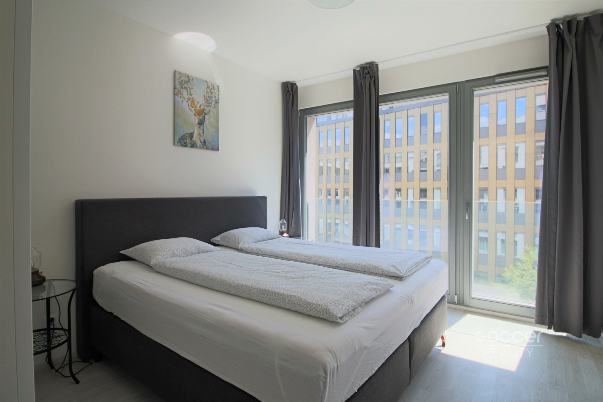 Soccer Reality vám exkluzivně zprostředkuje pronájem moderního bytu o dispozici 2+kk a celkové ploše 55 m2, který se nachází ve 4. patře novostavby Port Karolína v ulici U Mlýnského kanálu na Praze 8. Tento světlý a vkusně řešený byt je kompletně vybaven zcela novým nábytkem i spotřebiči, takže je připraven k okamžitému nastěhování bez nutnosti dalších investic. Srdcem bytu je obývací pokoj s kuchyňskou linkou vyrobenou na míru, která disponuje všemi moderními spotřebiči. V ložnici najdete komfortní manželskou postel a prostorné vestavěné skříně zajišťující dostatek úložného prostoru.
