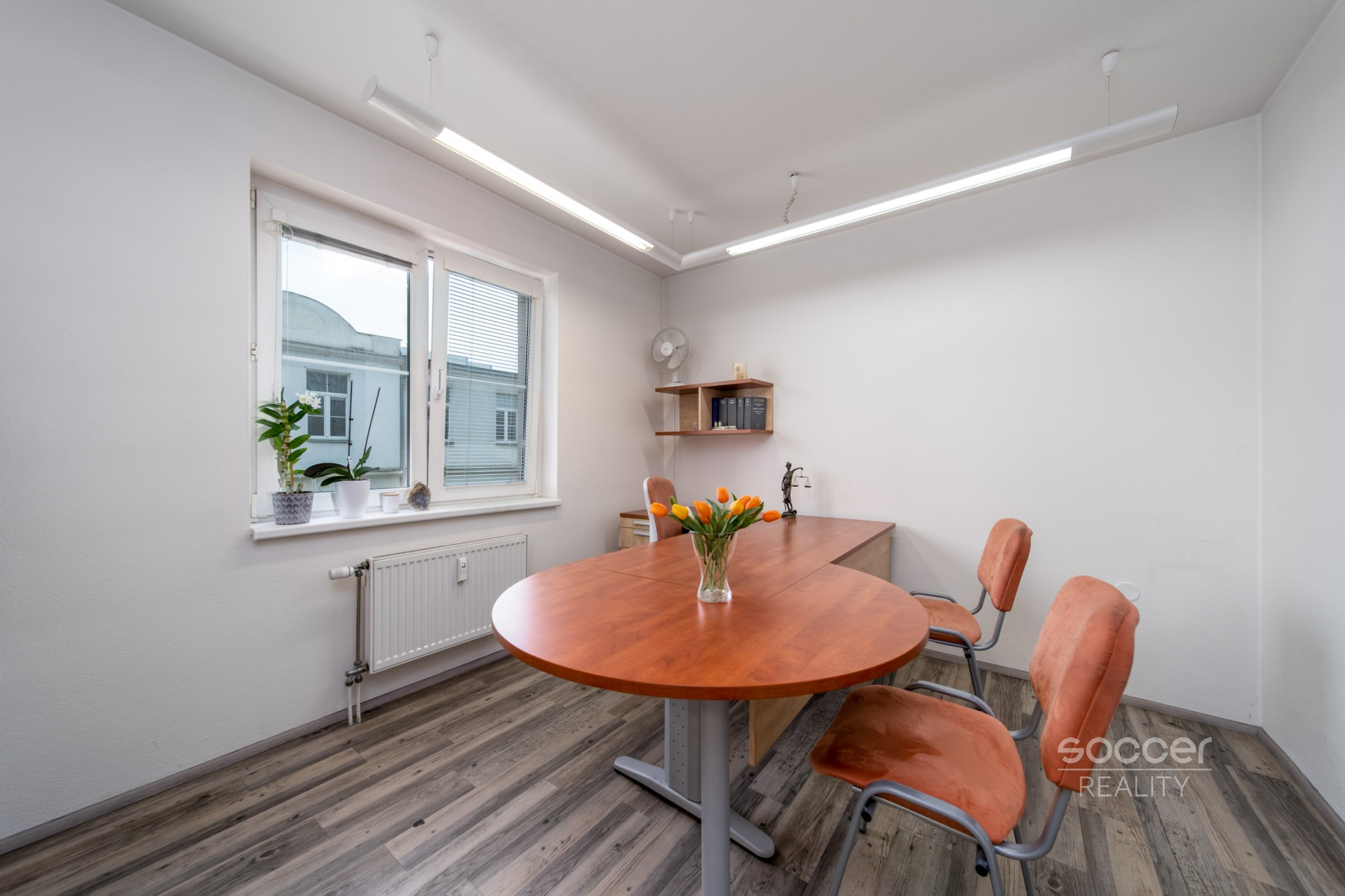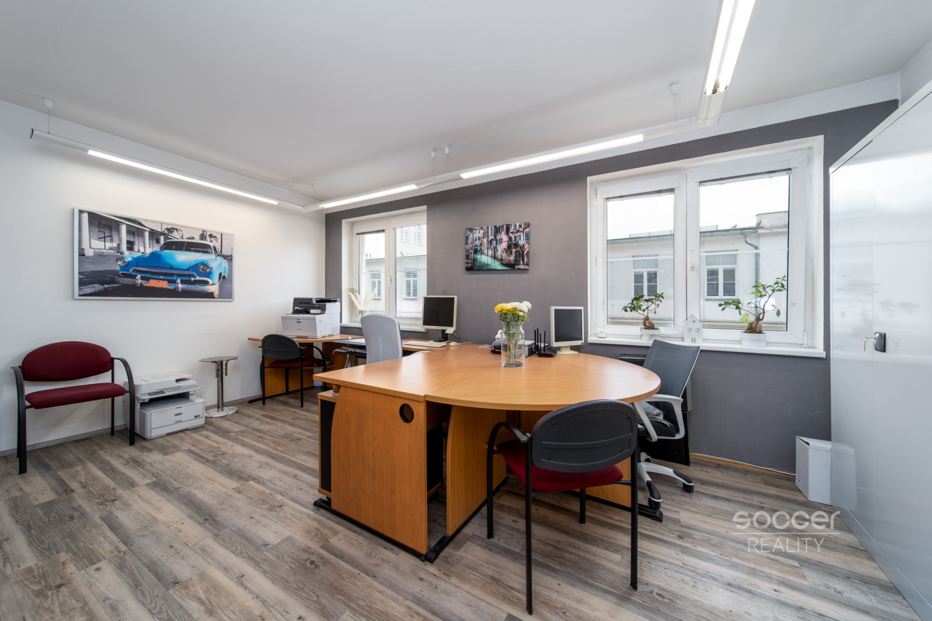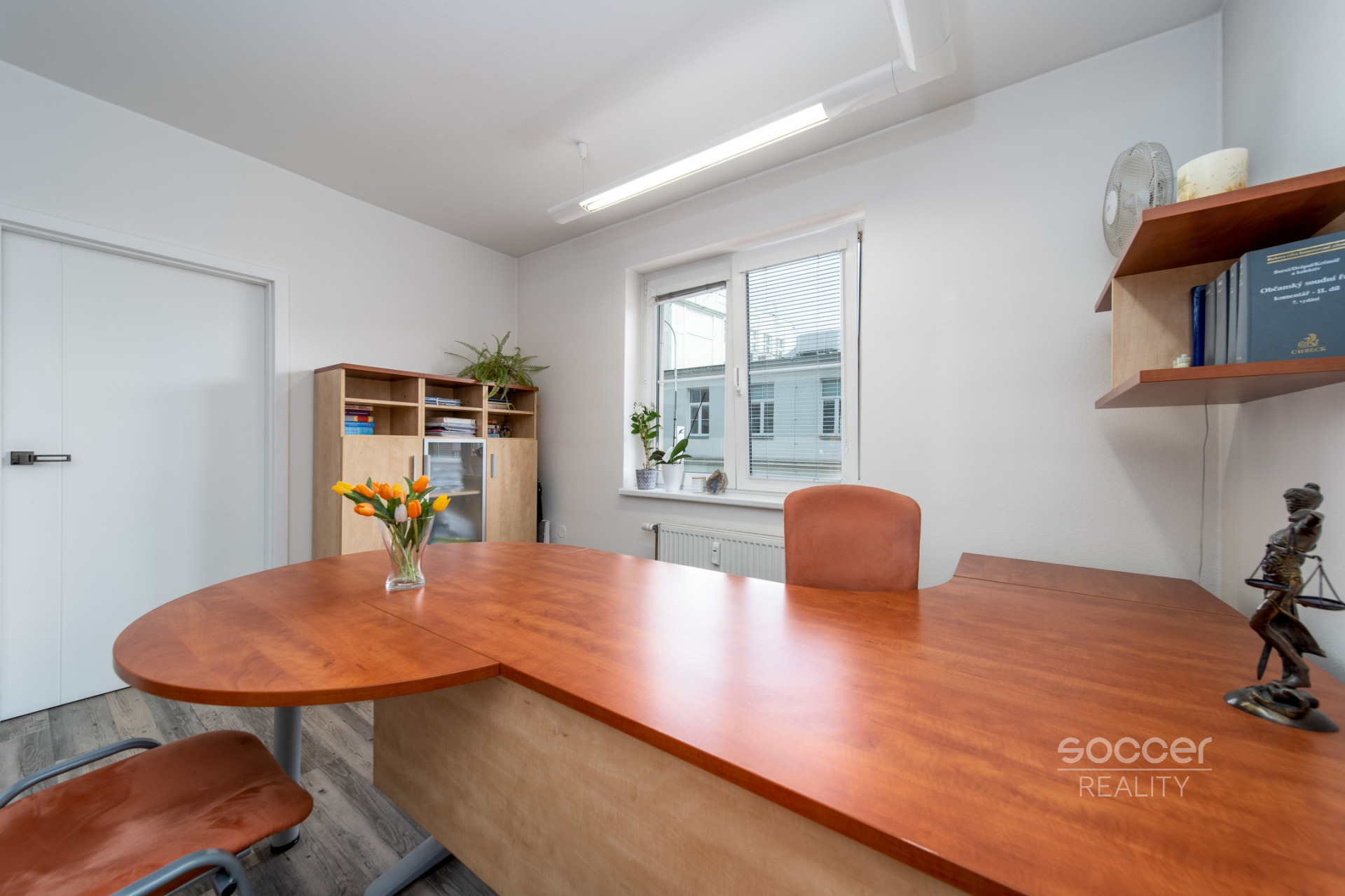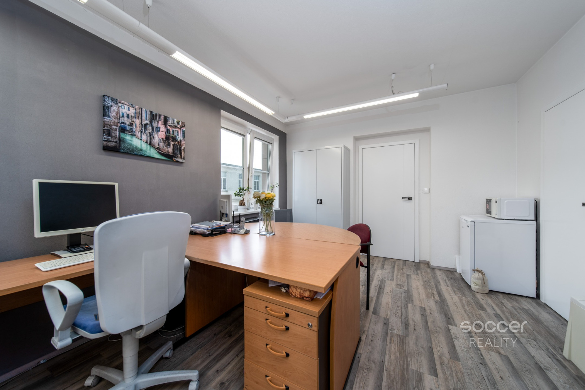 Vkusný interiér je částečně vybavený (část nábytku viditelného na fotografiích může zůstat) a disponuje vstupní halou, která je ideální spojnicí mezi třemi samostatnými kancelářemi a zázemím (kuchyňka, sprcha, toaleta). Místnosti jsou příjemné a světlé, největší z nich vyniká atypickým půdorysem. Všechna okna jsou pro vyšší komfort opatřena žaluziemi.