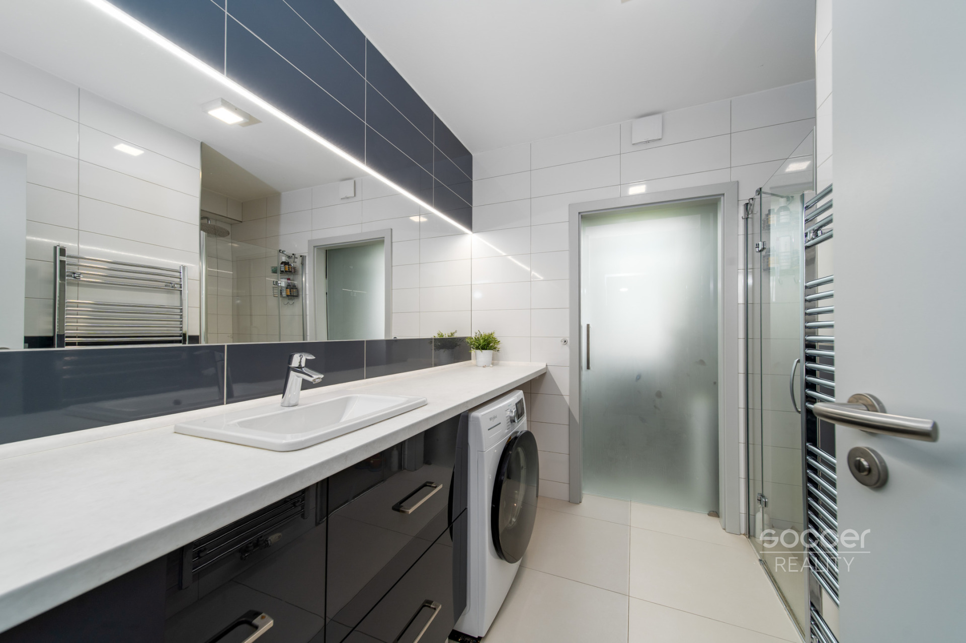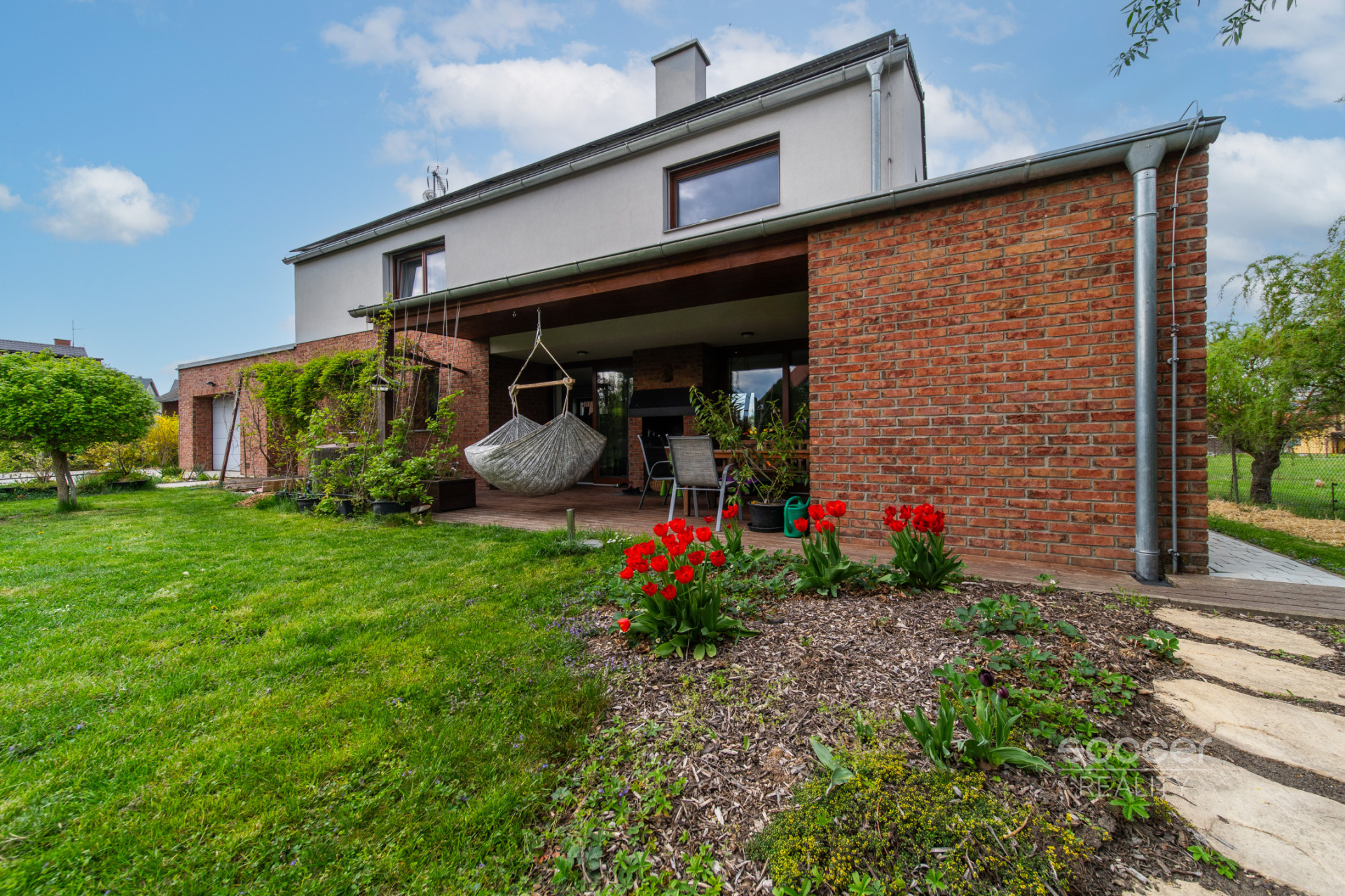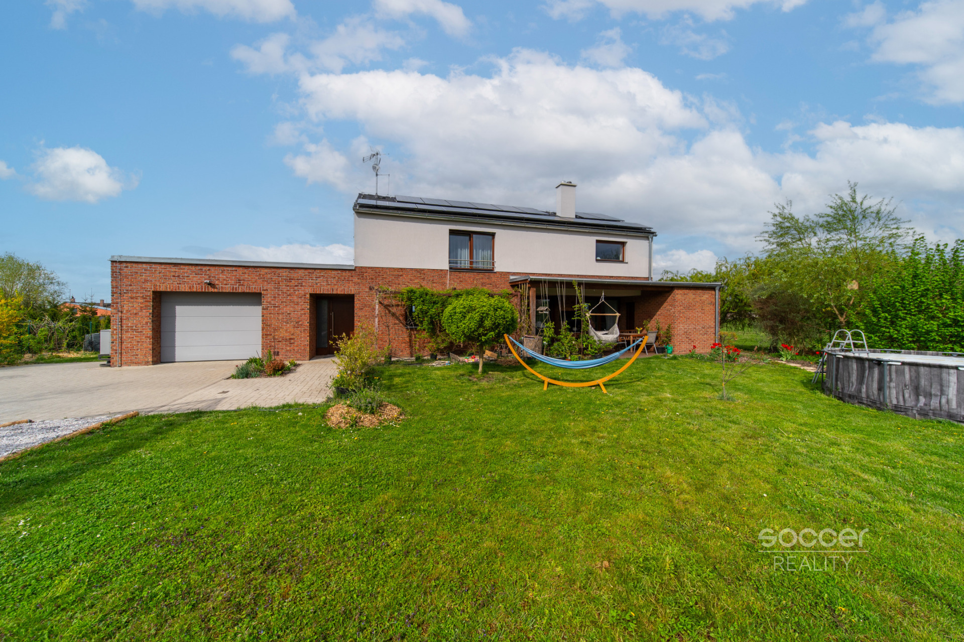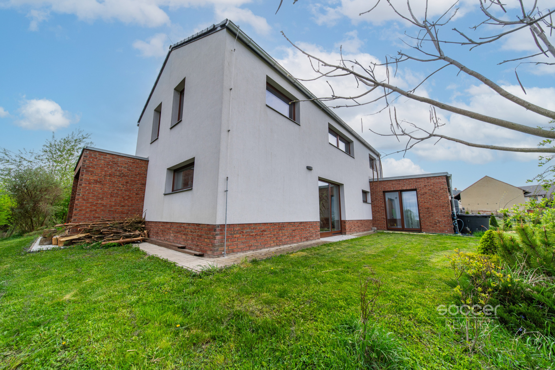 Velmi vkusný dům vám poskytne velkorysé zázemí ve dvou podlažích. Dispozičně je řešen jako 5 + kuchyňský kout + dvě koupelny + terasa + dvougaráž + dva sklady. Pro celý interiér jsou charakteristické vysoce kvalitní materiály. Nadchne vás také praktické technické zázemí jako tepelné čerpadlo, krb, solární panely, studna pro závlahu zahrady. Dům je napojen na veřejný vodovod i kanalizaci, byl dokončen a zkolaudován na konci roku 2017. Díky zateplení, pokročilým technologiím a efektivním způsobům vytápění dosahuje mimořádně příznivé režie cca 3000 Kč/měsíc a pyšní se energetickou třídou B - Velmi úsporná.