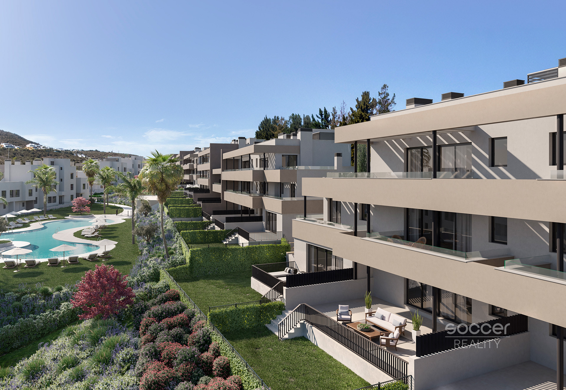 Nabízíme k prodeji elegantní dvouložnicový apartmán v exkluzivním rezidenčním projektu Bliss Homes, který se nachází v prestižní oblasti Casares Costa na pobřeží Costa del Sol, jen několik minut jízdy od Marbelly. Komplex je situován v klidném prostředí přímo u golfového hřiště a zároveň nabízí vynikající dostupnost na pláže, do Marbelly, Gibraltaru i na mezinárodní letiště. Tato lokalita je známá více než 300 slunečnými dny ročně a patří k nejpříjemnějším klimatickým oblastem Evropy.