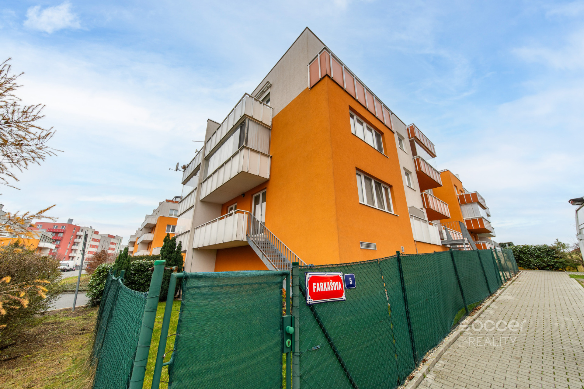 Soccer Reality výhradně zprostředkuje koupi bytu 2+kk o celkové ploše 56 m² včetně balkonu, umístěného ve 2. patře moderního bytového domu v klidné ulici Farkašova, Praha 9 – Kyje. Byt má východní orientaci, je dobře prosvětlený a vybaven klimatizací, která zvyšuje komfort bydlení zejména v letních měsících.