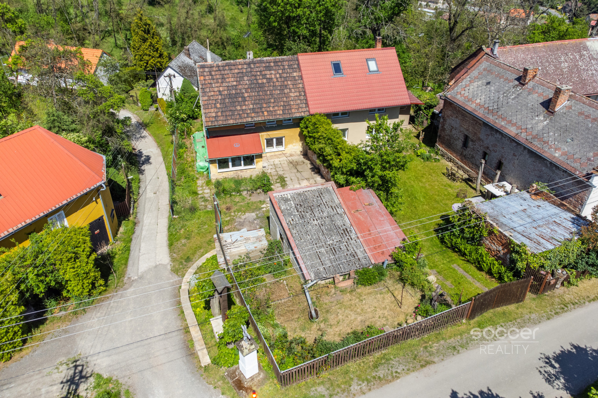 Celková plocha pozemků činí 633 m² a nachází se na nich kůlna, garáž a kůlna se vstupem do sklípku, dále dva původní hospodářské objekty. Vše je pro kompletní představu nutno vidět osobně.