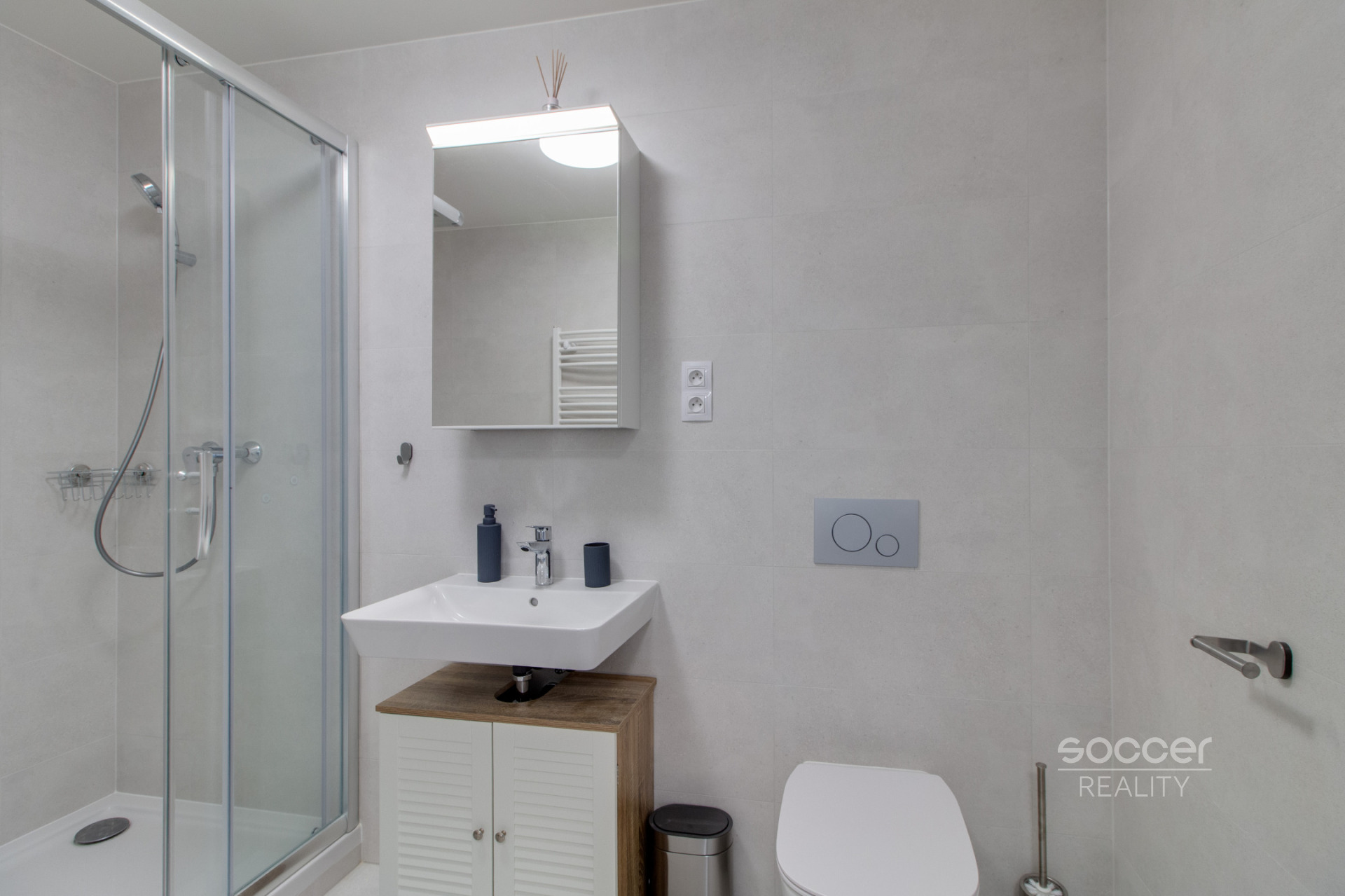 Zprostředkujeme vám k pronájmu moderní a světlý byt 1+kk o celkové ploše 31,7 m² (užitná plocha 29,2 m² + sklep 2,1 m²), který se nachází v 8. NP z 13 moderního domu s výtahem v ulici Malkovského, Praha 9 – Letňany. Byt je v osobním vlastnictví, situovaný v novostavbě s kvalitními materiály a důrazem na moderní styl bydlení. Podlahy tvoří laminátová podlaha v dekoru Dub Murom, obklady Betonico dodávají interiéru industriální nádech. Okna jsou plastová, vytápění centrální.