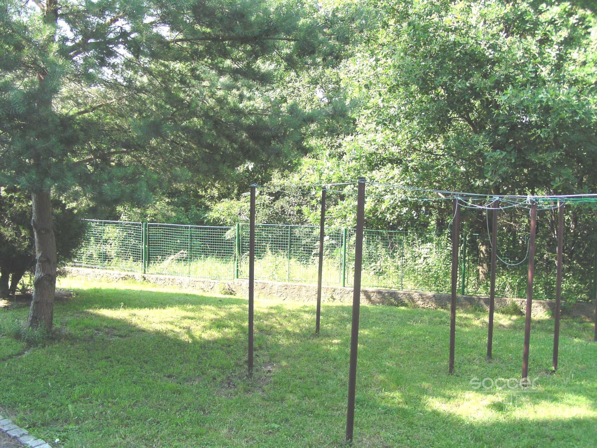Z oken pohled do příjemné společné okrasné zahrady, která je celá oplocená, možnost posezení, grilování apod.